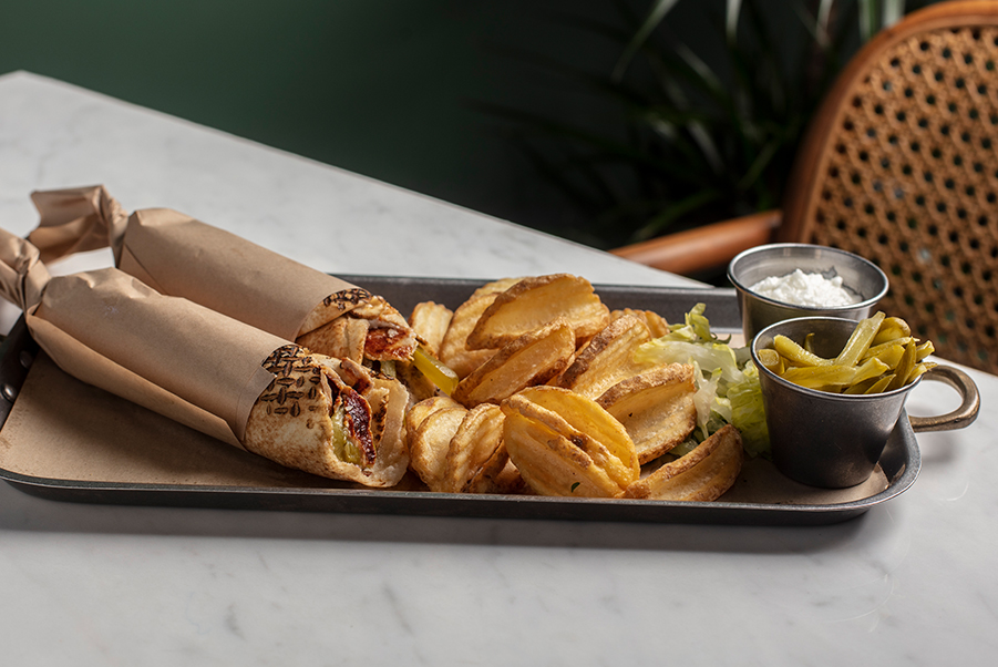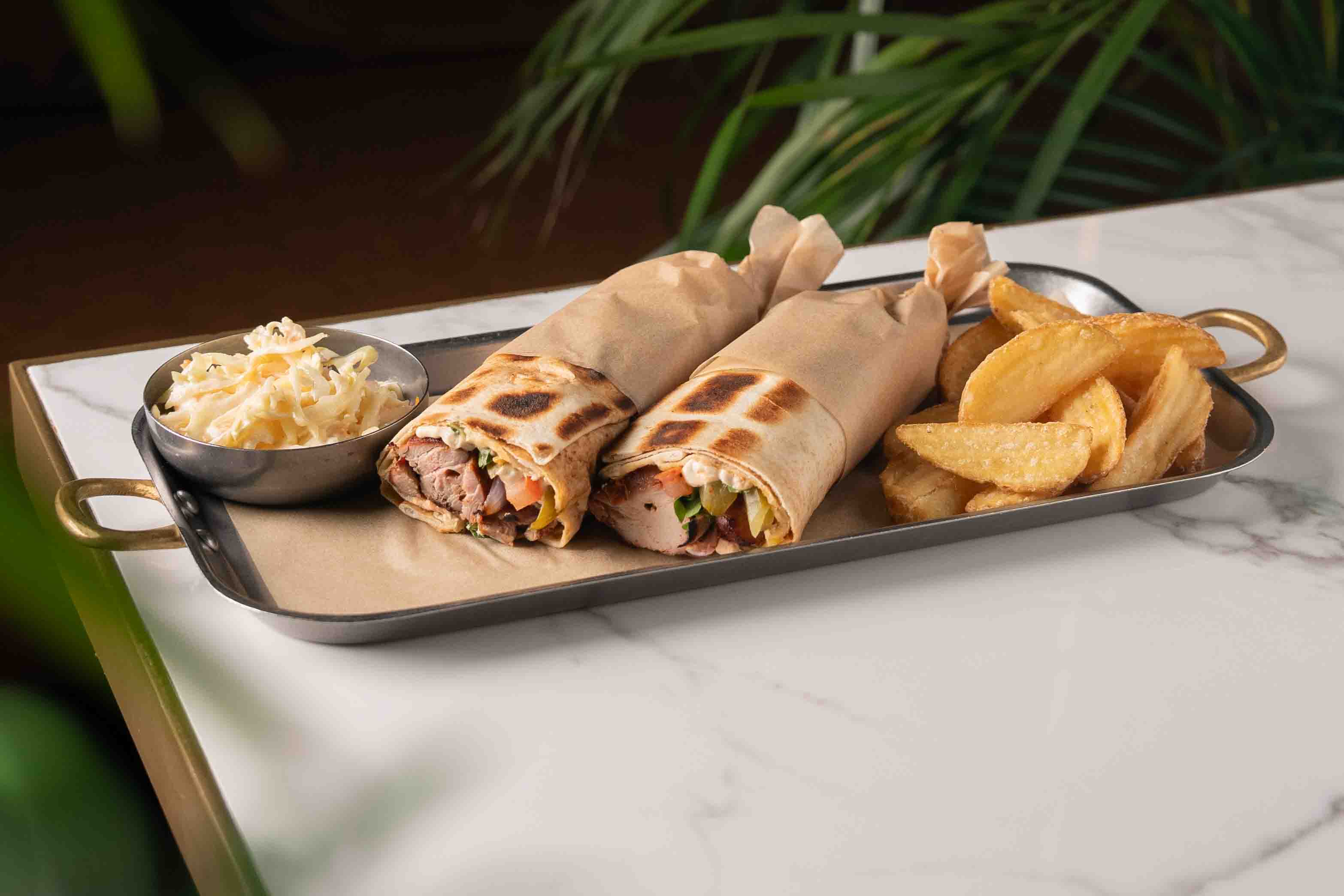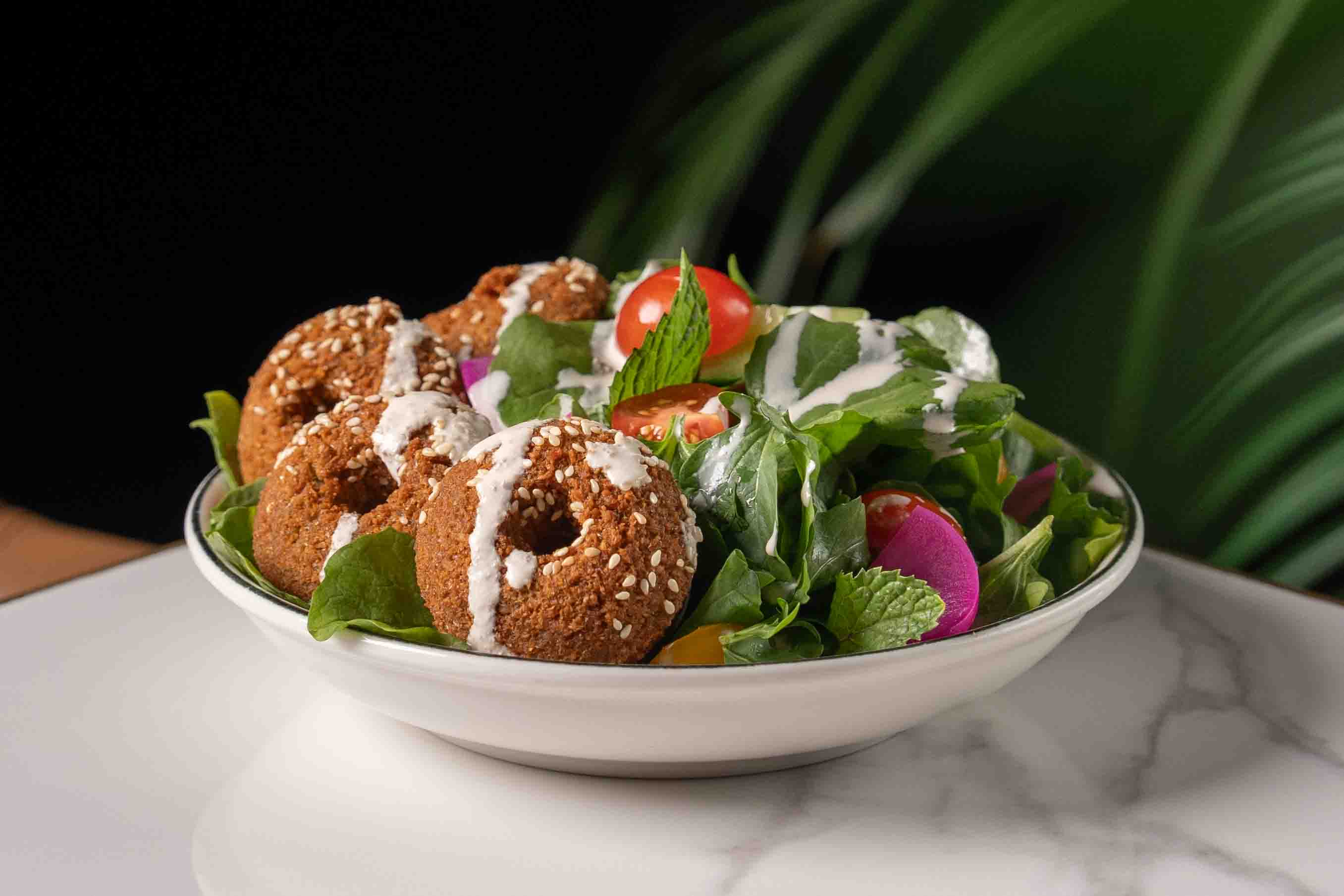 (for 2) eggs your way coupled with feta mix, halloumi, nabulsi cheese, hummus fatteh, moutabal, balila, vegetable platter, figs jam, carob molasses & halawa served with 2 hot beverages of your choice; Lebanese coffee or tea