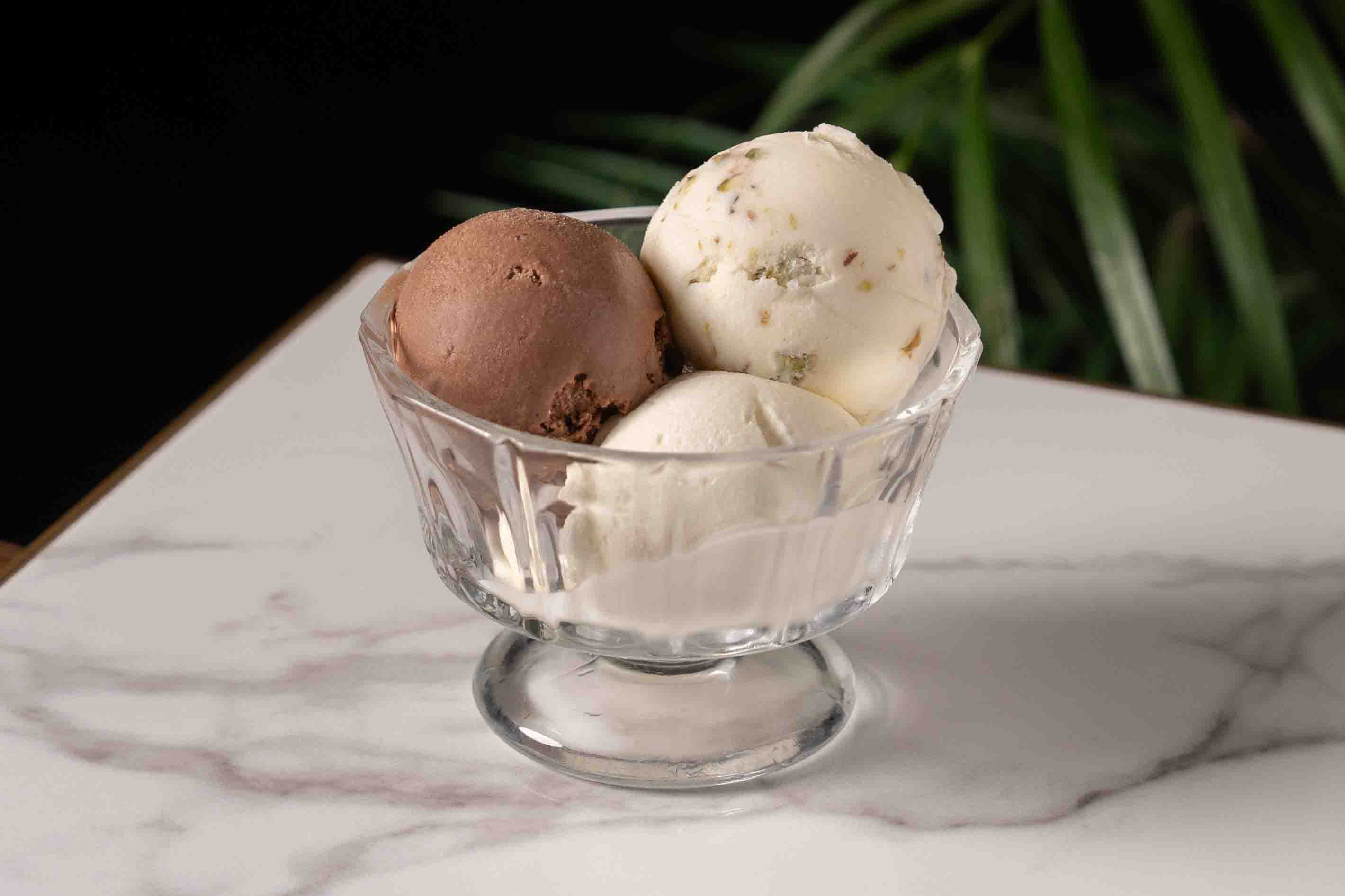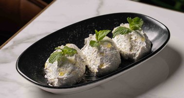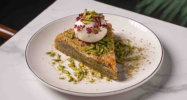 stuffed with mastic ice cream and halawa, with a drizzle of carob molasses