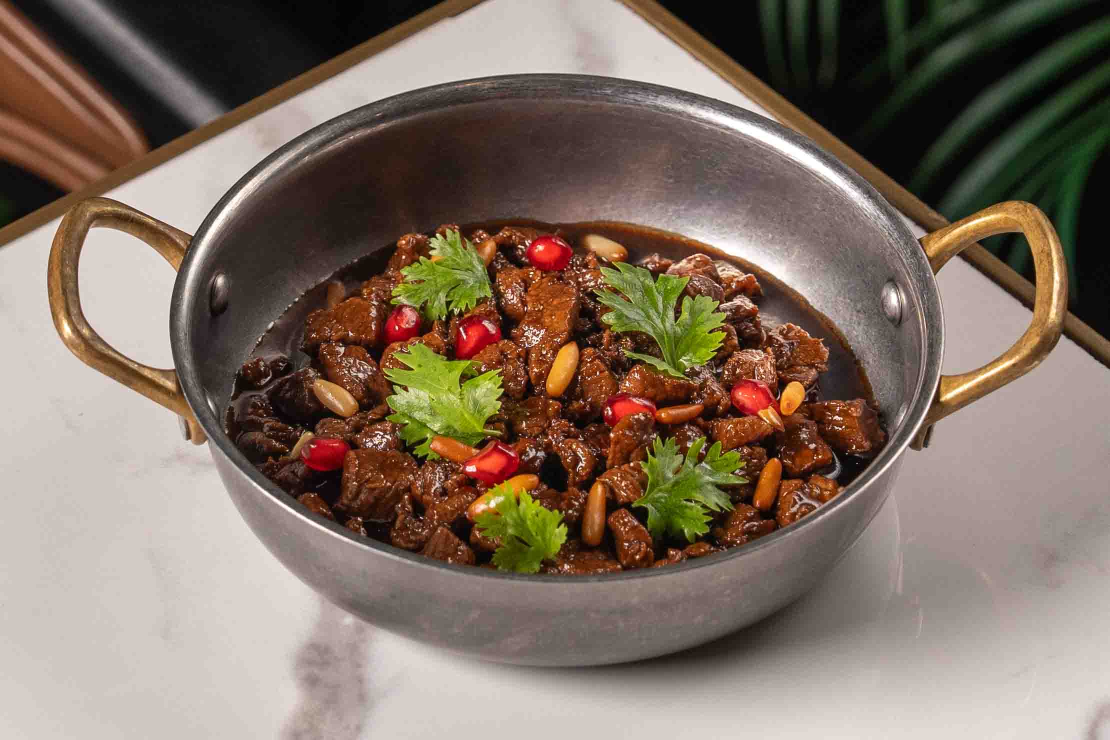 stuffed with fresh ashta, topped with pistachio, and served with sugar syrup