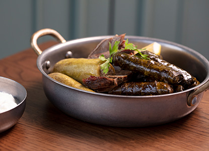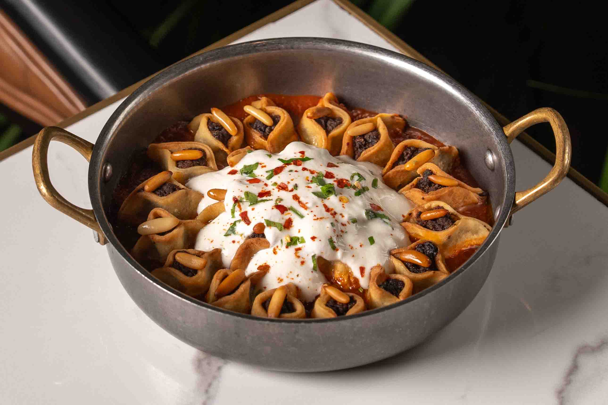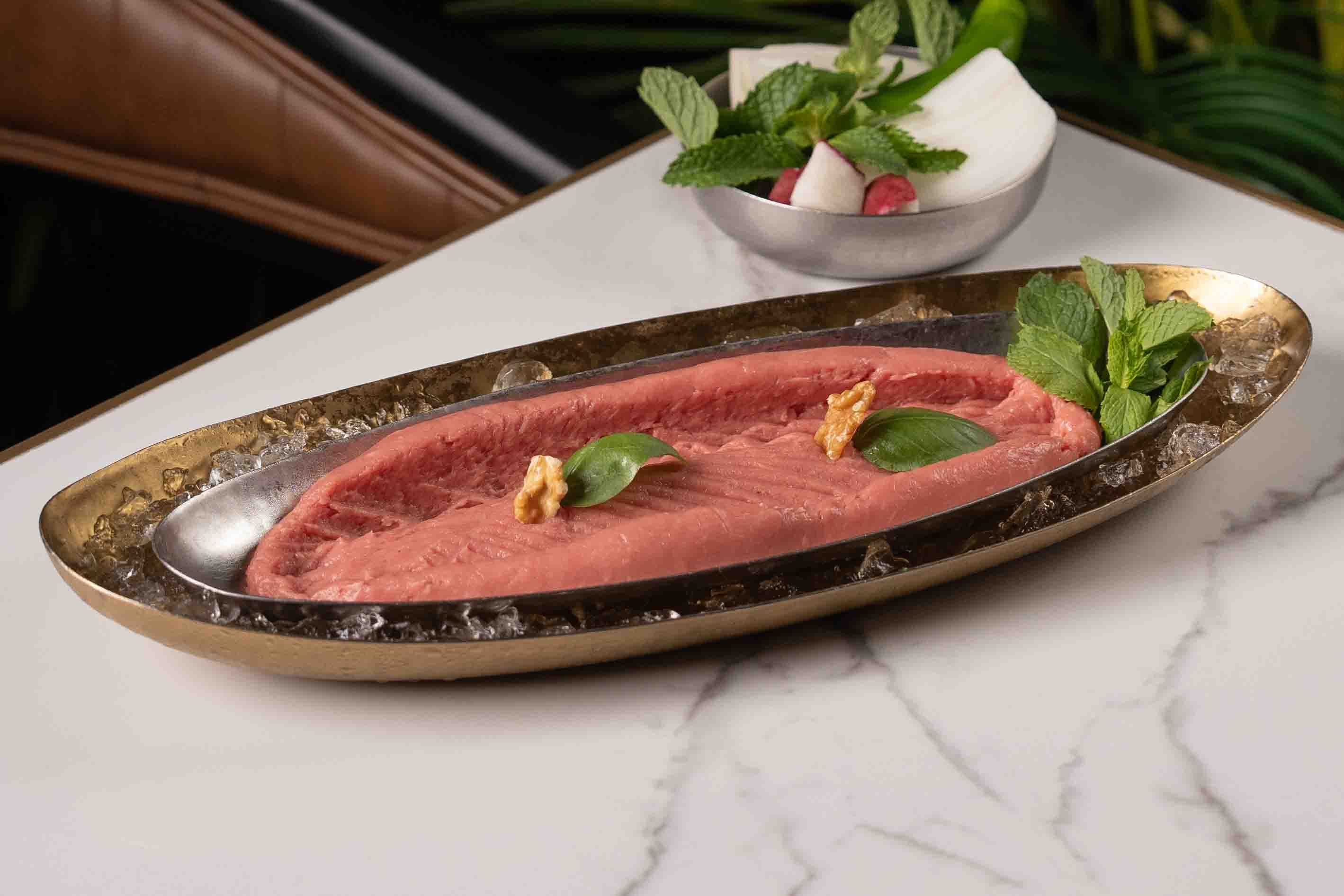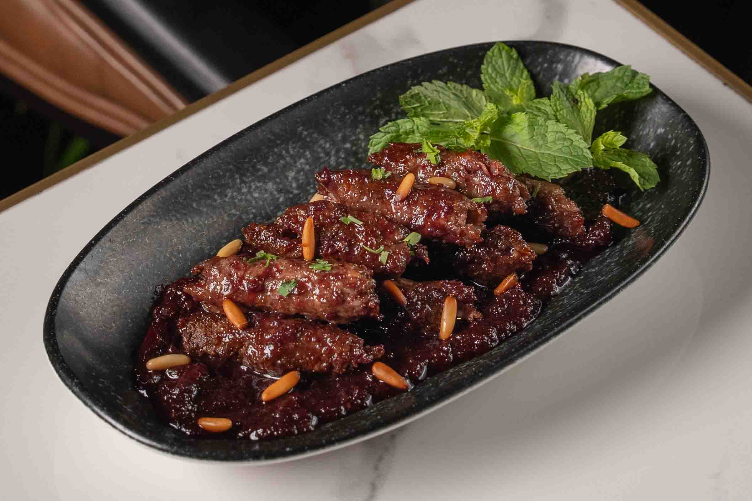 stuffed with mastic ice cream and halawa, with a drizzle of carob molasses