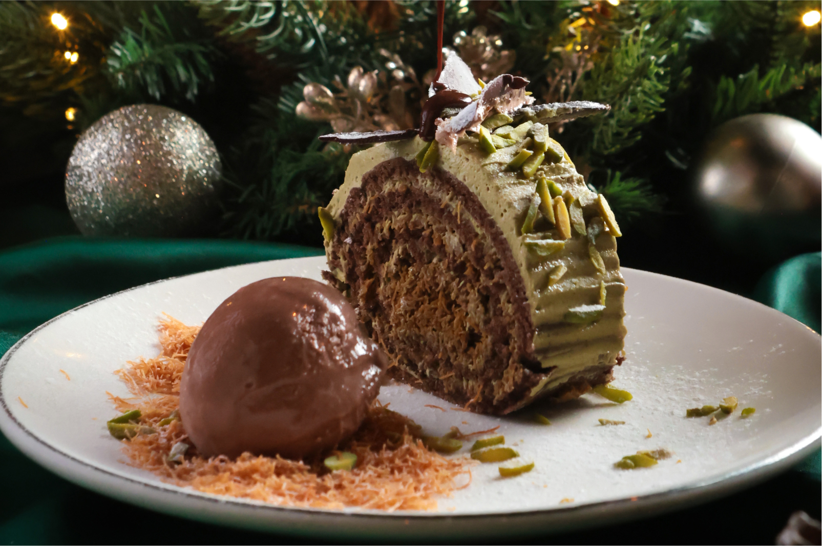 stuffed with mastic ice cream and halawa, with a drizzle of carob molasses